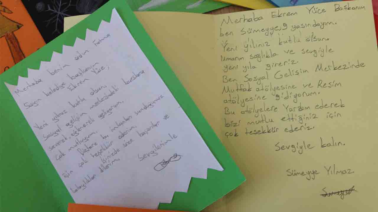 Adapazarı Sosyal Gelişim Merkezi (SGM) öğrencileri, kendi elleriyle hazırladığı yeni yıl kutlama mesajlarını Belediye Başkanı Ekrem Yüce’ye gönderdi.