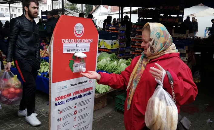 Taraklı Belediye Başkanı İbrahim Pilavcı, dünyayı saran koronavirüse karşı ilçede tüm önlemleri aldıklarını ve almayı da sürdüklerini söyledi.Pilavcı, “Koronavirise karşı belediye olarak gerekli tedbirlerimizi alıyoruz. Halkımızın yoğun olarak kullandığı meydan, cadde ve sokaklarımıza dezenfektanlar koyduk. Halkımız koyduğumuz bu dezenfektanlarla ellerini dezenfekte edebilir” dedi