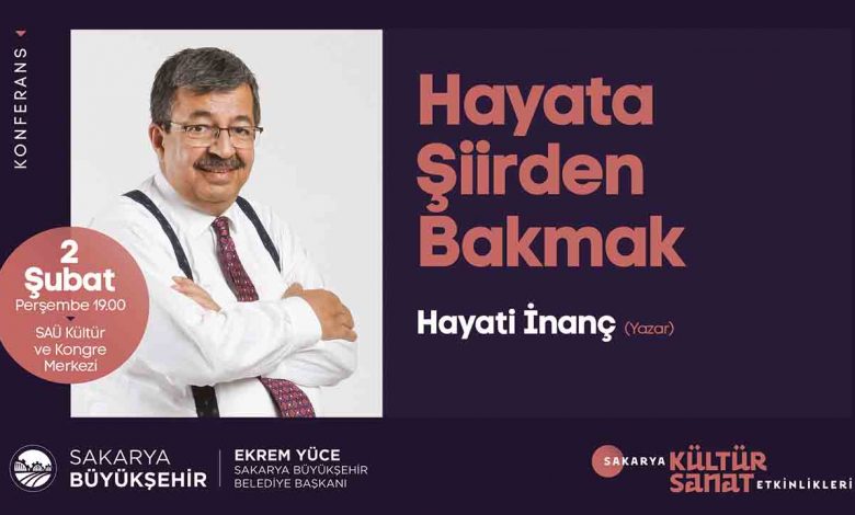 Büyükşehir Şubat kültür sanat etkinlikleri 2 Şubat Perşembe günü Yazar Hayati İnanç’ın katılımıyla gerçekleştirilecek ‘Hayata Şiirden Bakmak’ isimli konferans ile devam edecek. SAÜ Kültür ve Kongre Merkezi’nin ev sahipliği yapacağı program saat 19.00’da başlayacak.