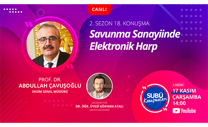 Sakarya Uygulamalı Bilimler Üniversitesi (SUBÜ) tarafından düzenlenen SUBÜ Konuşmaları’nın 18. programının konuşmacısı Elektronik Harp Sistemleri Mühendislik Ticaret Anonim Şirketi (EHSİM) Genel Müdürü Prof. Dr. Abdullah Çavuşoğlu olacak. Moderatörlüğünü SUBÜ Robot Teknolojileri ve Akıllı Sistemler Uygulama ve Araştırma Merkezi (ROTASAM) Müdürü Dr. Öğr. Üyesi Gökhan Atalı’nın yapacağı söyleşide ‘Savunma Sanayiinde Elektronik Harp’ başlığı ele alınacak. 17 Kasım Çarşamba günü saat 14.00’te gerçekleştirilecek söyleşi, üniversitenin resmi YouTube kanalı SUBÜ Haber’den canlı yayınlanacak.