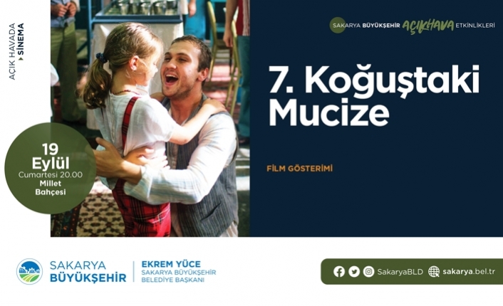 Sakarya Büyükşehir Belediyesi tarafından düzenlenen açık hava kültür sanat etkinlikleri Millet Bahçesi’nde devam ediyor. Aras Bulut İynemli’nin başrolünü oynadığı ve film otoritelerinden tam not alan 7. Koğuştaki Mucize filmi 19 Eylül Cumartesi günü saat 20.00’de vatandaşlarla buluşacak. 20 Eylül Pazar günü ise Tiyatro Mask ekibinin hazırlayıp sahnelediği ‘Arı Maya’ isimli tiyatro oyunu saat 20.00’de Millet Bahçesi’nde sahnelenecek.