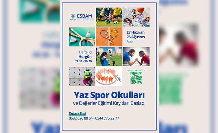 Sakarya Uygulamalı Bilimler Üniversitesi (SUBÜ) Egzersiz ve Spor Bilimleri Eğitim Uygulama ve Araştırma Merkezi (ESBAM) tarafından çocuk ve gençlerin fiziksel, zihinsel, sosyal ve psikolojik gelişimlerine katkı sağlamak amacıyla organize edilen yaz spor okulları başlıyor. 27 Haziran 2022 ve 26 Ağustos 2022 tarihleri arasında 8 hafta süreyle 09.30-16.30 saatleri arasında düzenlenecek yaz spor okullarında futbol, basketbol, badminton, tenis, geleneksel okçuluk, bilek güreşi, spor tırmanış ve doğa sporları branşları yer alacak. ESBAM yaz spor okulları kapsamında spor eğitiminin yanı sıra talep edenlere Serdivan Kampüs Cami’nde Kuran-ı Kerim, Din Eğitimi ve ezber derslerini içeren değerler eğitimi de herhangi bir ücret talep edilmeden verilecek. 6-18 yaş aralığında çocuk ve gençlerin kayıt edilebileceği yaz spor okulları için kayıtlar https://esbam.subu.edu.tr/tr adresindeki online form ile yapılacak. Buna ek olarak velilerden matbu başvuru formunu doldurarak ESBAM’a teslim etmeleri istenecek. 0532 626 88 54 ve 0544 775 22 77 numaralı telefonlardan detaylı bilgi alınabilecek.