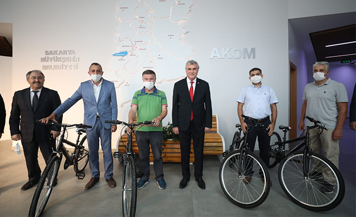 Sakarya Büyükşehir Belediye Başkanı Ekrem Yüce, 16-22 Eylül Avrupa Hareketlilik Haftası münasebetiyle düzenlenen ‘Sakarya İşine Bisikletle Gidiyor’ adlı sosyal medya etkinliği kapsamında bisiklet kazanan talihlilere hediyelerini takdim etti.