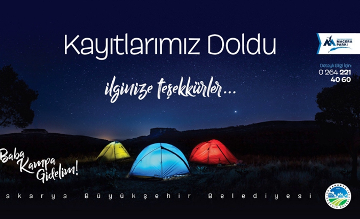 Sakarya Büyükşehir Belediyesi tarafından inşa edilen Yaşayarak Öğrenme Macera Parkı’nın yeniden ev sahipliği yapacağı ‘Baba Kampa Gidelim’ projesinin kayıtları tamamlandı. Yoğun istek üzerine yeniden düzenlenen babalar ve çocuklarının birlikte eğlenceli, güzel bir hafta sonu geçireceği ‘Baba Kampa Gidelim’ projesi 7-8 Eylül tarihleri arasında Macera Park’ta gerçekleştirilecek. Kampta 7-14 yaş arası çocuklar, babaları ile birlikte açık havada sinema keyfi, doğa yürüyüşleri, kamp ateşinde sohbet, macera parkurları ve diğer birçok sürprizlerle eğlencenin tadını doyasıya çıkaracak. Sosyal Hizmetler Dairesi Başkanlığı’ndan yapılan açıklamada, “Macera Park’ın yeniden ev sahipliği yapacağı ‘Baba Kampa Gidelim’ projemizin başvuruları tamamlandı. Vatandaşlarımıza göstermiş oldukları yoğun ilgiden dolayı teşekkür ederiz” ifadelerine yer verildi.