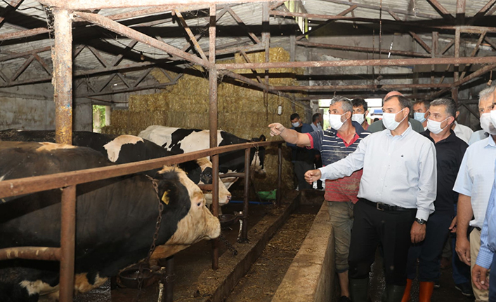 Selden etkilenen evler ile tarım arazilerini yerinde gören Vali Çetin Oktay Kaldırım, yetkililerle yapılacak çalışmalar konusunda istişarelerde bulundu.
