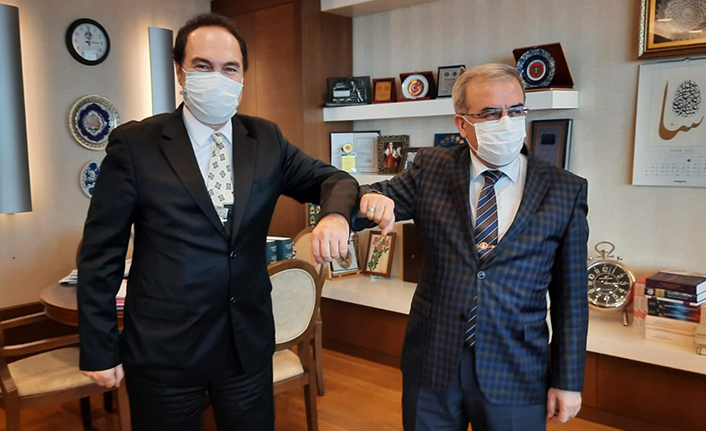 Dünya Gençlik ve Spor Konfederasyonu Genel Başkanı Türker Aygündüz; Kamu Yönetimi Araştırma Derneği (KAYAD) Genel Başkanı aynı zamanda TSE Rehberlik ve Denetim Kurulu Başkanlığı Başdenetçisi Özgür Şahin ve Kamu Yönetimi Araştırma Derneği (KAYAD) Genel Başkan Yardımcısı Murat GÜREL ile birlikte, Uyuşmazlık Mahkemesi Başkanvekili Muammer Topal’a makamında ziyaret ederek “hayırlı ve uğurlu olsun” dileklerinde bulundu. Bir Sakarya’lı olarak gururlandıklarını ifade eden Başkan Türker Aygündüz; “Hayırlı olsun ziyaretinde bulunduk. Sayın Muammer Topal beyefendiyi Başkanvekilliği görevine seçilmesinden dolayı kutluyoruz. Rabbim hayırlı hizmetler yapmayı nasip etsin inşallah. Göstermiş oldukları yakın ilgi ve alakalarından dolayı da kendisine çok teşekkür ediyoruz” dedi.