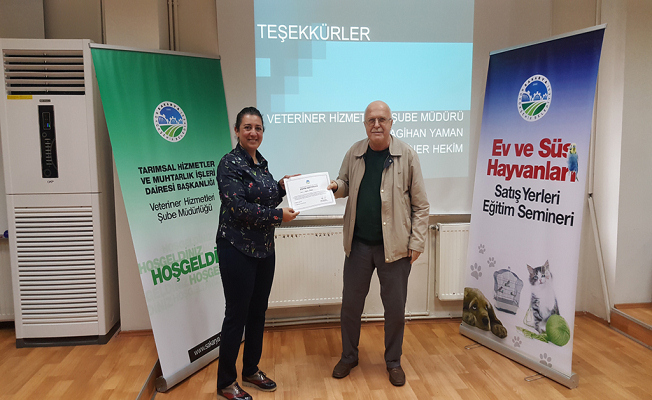 Eğitim hakkında açıklama yapan Veteriner Hizmetleri Şube Müdürü Veteriner Hekim Nagihan Yaman, “Veteriner Hizmetleri Şube Müdürlüğünce işyeri sahiplerinin katıldığı ‘Ev ve Süs Hayvanları Satış Yerleri’ başlıklı eğitim semineri düzenledik. Veterniner hekimlerimizce katılımcılara 8 saat süren eğitim boyunca pet hayvanlarının bakım, besleme, barındırma şartları, yasal mevzuat, kanun ve yönetmelikleri içeren detaylı bilgiler vermeye çalıştık. Aynı zamanda eğitimize katılan ev ve süs hayvanları satışı yapan tüm işyeri sahiplerine işyerlerinin ruhsatlandırılmasında gerekli sertifikalarda tarafımızca verildi. Umuyoruz ki gerekli denetimler ve eğitimler sonucunda pet hayvanları daha sağlıklı ve doğal koşullarda yaşamlarını sürdürmeye devam edecekler” dedi.
