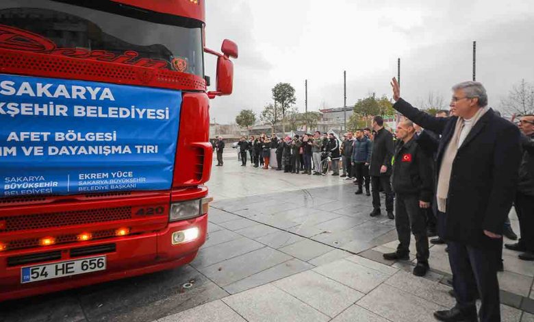 Sakarya Büyükşehir Belediyesi tarafından Demokrasi Meydanı’nda koordine edilen yardım merkezinden 4 tır yardım malzemesi ve bir afet koordinasyon tırı olmak üzere toplam 5 tır daha Diyarbakır’a gitmek üzere yola çıktı. Gıda kolisinden ısıtıcıya kadar tüm ihtiyaç malzemelerinin yer aldığı araçlar Diyarbakır’da kurulan çadırkentte depremzedelere ulaştırılacak. Sakarya Büyükşehir Belediye Başkanı Ekrem Yüce’nin bizzat inceleyip Sakarya’dan uğurladığı yardım tırları Demokrasi Meydanı’ndan dualarla hareket etti.