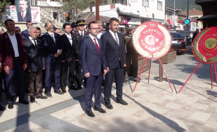 Çelenk sunma törenine Taraklı’da yeni görevine başlayan Kaymakam Abdullah Aslantürk Belediye Başkanı İbrahim Pilavcı ,siyasi parti temsilcileri daire müdürleri öğretmen ve öğrenciler katıldı.