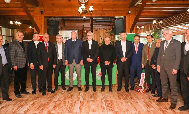 Sakarya Büyükşehir Belediye Başkanı Ekrem Yüce, Sapanca Ziraat Odası Olağan Genel Kurulu’na katıldı. Mevcut başkan Necati Başar’ın tekrar başkan seçildiği toplantıya, Sapanca Belediye Başkanı Özcan Özen, AK Parti İlçe Başkanı Yunus Gümüşel, Muhtarlar Federasyonu Başkanı Erdal Erdem, Demiryol-İş Sendikası Sakarya Başkanı Cemal Yaman, RATED Başkanı Remzi Adıyaman, siyasi parti temsilcileri ve çok sayıda misafir katıldı. Sapanca’ya yapmış olduğu katkılardan dolayı Başkan Yüce’ye plaket takdim eden Ziraat Odası Başkanı Başar, “Kıymetli Başkanımız Sayın Ekrem Yüce, göreve geldiği günden itibaren şehrimizin her alanda kalkınması ve gelişmesi noktasında samimiyetini ve gayretini ortaya koymaktadır. Bizler ilçe olarak kendisine sağlamış olduğu katkılardan dolayı çok teşekkür ediyoruz” diye konuştu.