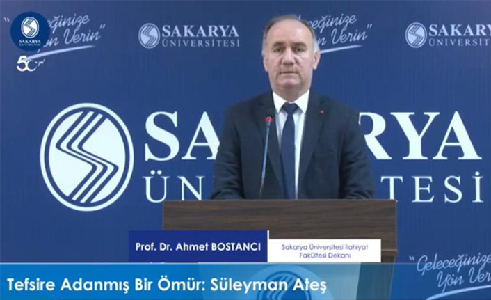 Programda konuşan Sakarya Üniversitesi İlahiyat Fakültesi Dekanı Prof. Dr. Ahmet Bostancı da fakülte olarak ders dışı akademik ve kültürel etkinliklere çok önem verdiklerini ifade etti. Faaliyetlerinin pandemi şartlarından etkilendiğini belirten Bostancı, faaliyetleri yine de online olarak sürdürmeye çalıştıklarını ve güz döneminde çok sayıda etkinlik gerçekleştirdiklerini söyledi. Dekan Bostancı, “Tefsire Adanmış Bir Ömür” üst başlıklı programlarının ilkini geçen yıl “Tefsire Adanmış Bir Ömür: İsmail Cerrahoğlu” başlığıyla icra ettiklerini ve bu yıl ikincisini Prof. Dr. Süleyman Ateş ile devam ettirdiklerini kaydetti. Bu programların önemli bir yanının, öncelerinde onur konuğu olan hocayı anlatan kitap hazırlanması olduğunu belirten Bostancı, panellerin de kitap çalışmasının bir nevi taçlandırılması şeklinde gerçekleştiğini aktardı. “İnsanların yaşarken kıymetinin bilinmesinin, değerlerimize yaşarken vefa gösterilmesinin önemli olduğunu düşünüyoruz. İnşallah gerçekleştirdiğimiz bu programlar bu konuda da diğer kurumlara ve kişilere örneklik teşkil eder” diyen Prof. Bostancı, “Tefsire Adanmış Bir Ömür: Süleyman Ateş” kitabının hazırlanmasında ve programın düzenlenmesinde emeği geçenlere teşekkürlerini ilettikten sonra sözlerini tamamladı.
