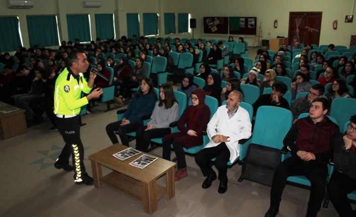 Sakarya İl Emniyet Müdürlüğü trafik denetleme eğitim büro personelleri tarafından Sakarya Anadolu Lisesi öğrencilerine trafik eğitimi verildi.