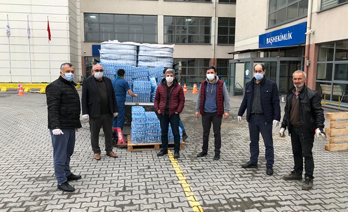 Çelebi, Koronavirüs ile mücadele kapsamında tıbbi malzeme haricinde de ihtiyaçların olduğuna dikkat çekerek şunları söyledi: “Bu konuda da sağlık çalışanlarımıza destek olan ve yardımda bulunan çok sayıda kurum ve kuruluş var. Biz de Sakarya Trabzonlular Kültür ve Dayanışma Derneği olarak As Su yetkilileri ile yaptığımız görüşmeler neticesinde 17 bin 461 adet hazır pet şişe içme suyu temin ederek sağlık çalışanlarımızın kullanımı için başhekimliğimize teslim ettik. Bu zor ve hassas dönemde yapılan her bir yardım ve destek elbetteki çok daha büyük önem ifade etmektedir. Bu konuda özellikle As Su şirket sahibi Yaşabey Kalebaşı olmak üzere Atom Mühendislik firmasından Orkun Akpınar beye katkıları ve destekleri için teşekkür ediyorum.”.