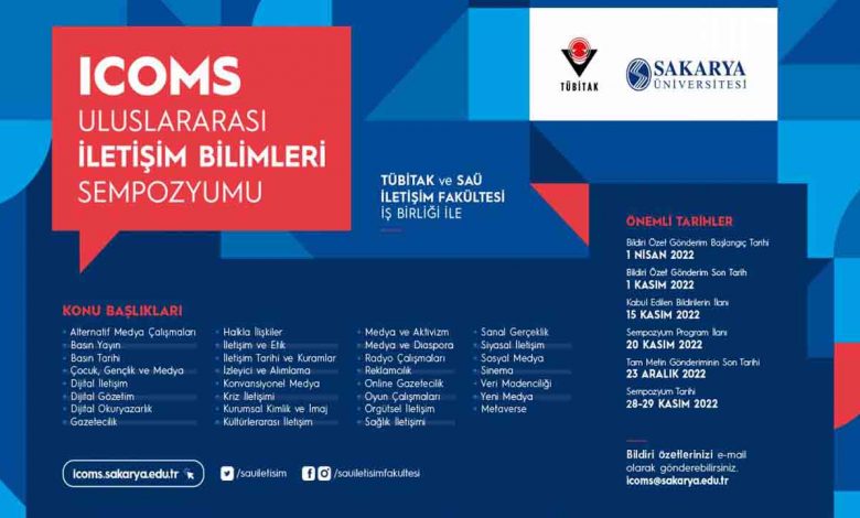 Sakarya Üniversitesi (SAÜ) İletişim Fakültesi ve Türkiye Bilimsel ve Teknolojik Araştırma Kurumu (TÜBİTAK) iş birliğiyle düzenlenen “ICOMS Uluslararası İletişim Bilimleri Sempozyumu” 28 Kasım tarihinde başlayacak.