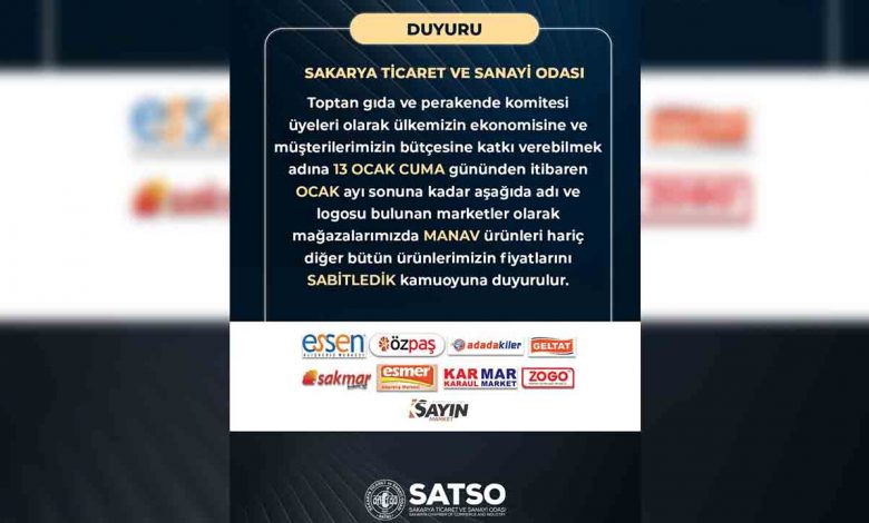 Sakarya Ticaret ve Sanayi Odası 3. Meslek Komitesi’ne bağlı olarak faaliyet gösteren ve içerisinde yerel zincir marketlerin bulunduğu sektör temsilcileri bir araya gelerek aldıkları karar neticesinde 13 Ocak itibariyle zincir marketlerinde fiyat sabitleme uygulamasına geçtiklerini belirttiler.