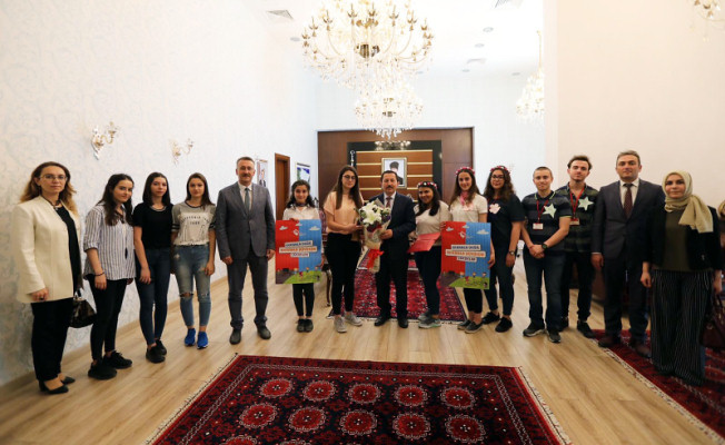 Daha sonra Gençlik ve Spor İl Müdürü Fatih Çelikel, Taşkısığı Ortaokulu Müdürü Hilmi Çil ve Beden Eğitimi öğretmeni Faruk Erdoğan Öztürk ile birlikte ziyarete gelen 54 Metre Fırlatma Topu Türkiye 1. si Milli Sporcumuz Esra Çiçek ve Sırbistan’daki Balkan Dağ Koşusunda Şampiyon olarak ay-yıldızlı bayrağımızı dalgalandıran Milli Atlet Azad Yüce’yi tebrik eden Vali Balkanlıoğlu, sporcularımızı ödüllendirerek başarılarının devamını dilediğini ifade etti.