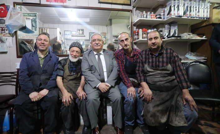 Ziyaretten büyük mutluluk duyduğunu ifade ederek 59 senedir ayakkabı tamircisi olarak esnaflık yaptığını belirten Ziyafettin Şimşek, kaybolmaya ve unutulmaya yüz tutmuş zanaatlar arasındaki ayakkabıcılık mesleğini teknolojiye inat, el emeği göz nuruyla yaşatmaya çalıştığını söyledi.