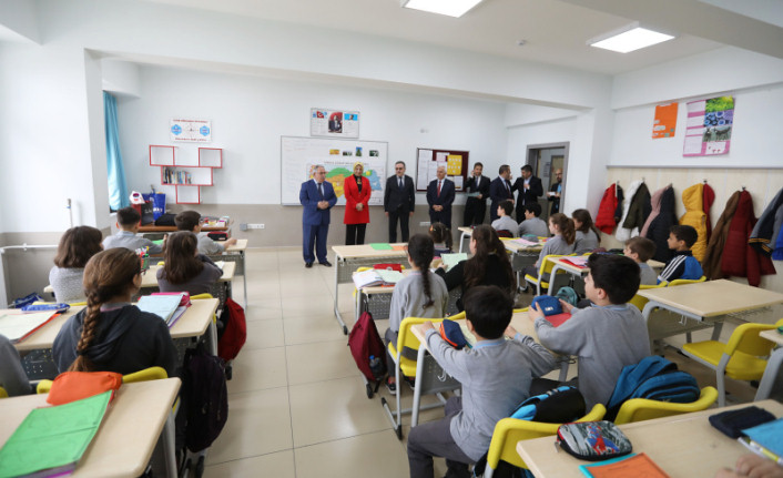 Okuldaki 5, 7 ve 8. sınıflarda derslere de eşlik eden Vali Ahmet Hamdi Nayir, öğrencilere çeşitli sorular yönelterek nasihatlerde de bulundu.