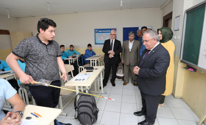 9. sınıflarda Fizik ile Matematik, 10. sınıfta Fıkıh ve 11. sınıfta Biyoloji derslerine ortak olan Vali Ahmet Hamdi Nayir, öğretmenler ve öğrenciler ile bir süre sohbet etti.