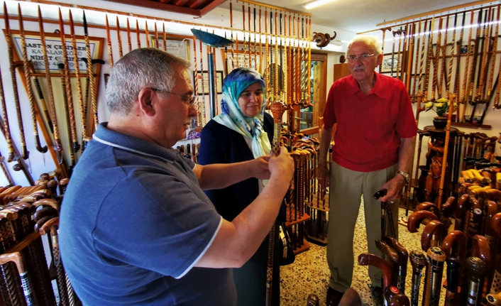 Eşi Hanımefendi Münevver Nayir ile birlikte atölyedeki eserleri inceleyerek baston ustası Çakıner ile bir süre sohbet eden Vali Ahmet Hamdi Nayir, kendisine hayırlı ve sağlıklı bir ömür dileğinde bulundu.