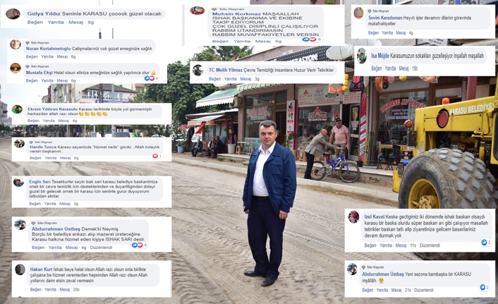 Karasu Belediye Başkanı İshak Sarı; “Gönül Gönüle Belediyecilik sloganımızla, imkânlarımız doğrultusunda ilçemizin her noktasına hizmet götürmeye çalışıyoruz. Ekiplerimizin ilçemiz genelinde başlattığı sıcak asfalt serim çalışmaları, kaldırım yapımı, tamir, çevre düzenleme, temizlik, park bahçeler, ağaçlandırma, yol bakım ve onarım çalışmaları olumlu sonuçlar ortaya koyuyor. Yaptığımız çalışmalarımızı sosyal medya ile Web sayfamızla birlikte il ve özellikle ilçemiz yerel basını aracılığıyla vatandaşlarımıza duyuruyoruz.