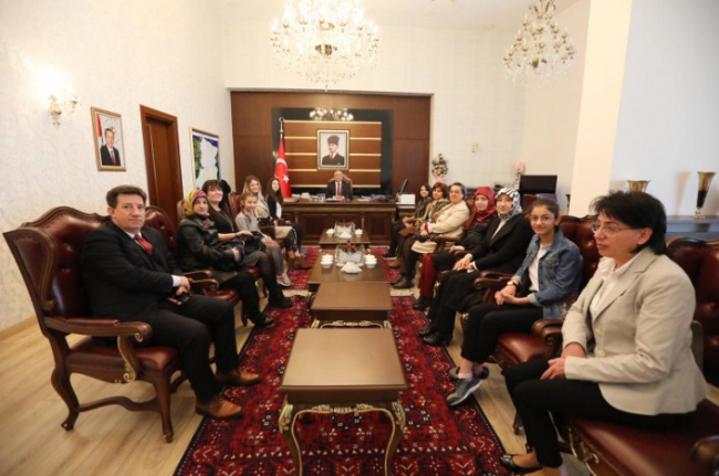 “Tüketici ve Tüketim” konulu resim yarışmasında dereceye girerek Türkiye 2’incisi olan Özel Şahin Ortaokulu öğrencisi Ahsen İpek Hocalar, Sakarya 1’incisi olan Nazmiye Ömer Sözer Ortaokulu öğrencisi Ece Çetin, Sakarya 2’incisi Zübeyde Hanım Ortaokulu öğrencisi Melisa Çetin ve Sakarya 3’üncüsü olan Aydın Gürdamar Ortaokulu öğrencisi Zülal Sümeyra Aş ve öğretmenlerin de katıldığı ziyarette, yaptıkları resimlerde insanlığa neler anlatmaya çalıştıklarını soran Vali Ahmet Hamdi Nayir, onlarla bir süre sohbet ederek tebrik ettiğini de ifade etti.