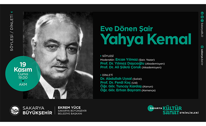 Sakarya Büyükşehir Belediyesi Kasım Kültür Sanat Etkinlikleri ‘Eve Dönen Şair: Yahya Kemal’ adlı dinleti ve söyleşi programıyla devam edecek.