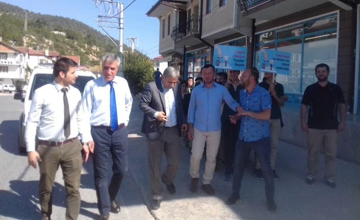 Ankara caddesinde yaya geçitlerinde “Yaya Geçidi Nöbeti” etkinliğine Kaymakam Abdullah Kurt,İlçe Emniyet Amiri Kemal Özdil kamu kurumları müdürleri ve öğrenciler katılarak nöbet tuttu.