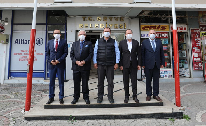 Geyve temasları kapsamında Cumhuriyet Başsavcısı Lütfi Dursun ve Kaymakam Mustafa Kutlu ile birlikte Belediye Başkanlığına uğrayarak Başkanı Murat Kaya’yı ziyaret edip ilçedeki çalışmalar ve projeler hakkında bilgiler alan Vali Çetin Oktay Kaldırım, daha sonra dünyaca ünlü ‘Geyve Ayvası ve Geyve Üzümü’ hasadına katılıp çiftçilerle bir süre sohbet etti.