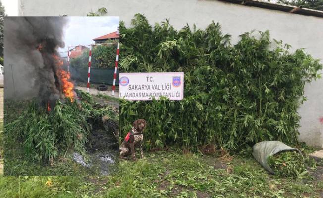 Ele geçirilen Hint Kenevirleri Hendek Tarım İlçe Müdürlüğü ekipleri gözetiminde Jandarma tarafından yakılarak imha edildi.