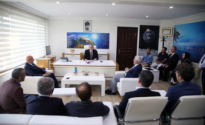 Sakarya Büyükşehir Belediye Başkanı Ekrem Yüce; Su ve Kanalizasyon İdaresi (SASKİ) Genel Müdür Vekilliği görevine başlayan Dr. İlyas Demirci, Büyükşehir Belediyesi Genel Sekreter Yardımcıları Ali Oktar ve Ziya Cevherli, SASKİ Genel Müdür Yardımcıları Dr. Recep Kılıç, Sebahattin Belik, Sezar Ercan ve iki kurumdan kurmaylarıyla SASKİ Genel Müdürlüğü’nde bir araya geldi. 31 Mart seçimlerinin ardından kurumda mevcut sistemi analiz ederek yeni yatırımların hayata geçirilmesi, mevcut yatırımların devamı ve sosyal ihtiyaçların karşılanarak sorunların çözüme kavuşturulması için rotasyonlar yaptıklarını aktaran Başkan Yüce, tüm personellerin kendileri için kıymetine değinerek herkesin katkısına ihtiyaçları olduğunu vurguladı.