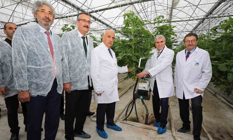 Büyükşehir Belediye Başkanı Ekrem Yüce, topraksız ve jeotermal tarımda rol model olarak nitelendirilen Akyazı Seracılık Mükemmeliyet Merkezi’nde Tarım Bakanı Vahit Kirişçi’yi ağırladı. 25 bin metrekare kapalı alanda yapılan topraksız tarımda kullanılan teknikleri tüm detaylarıyla anlatan Yüce, üst düzey teknolojisi ve maksimum verim kapasitesiyle tarımda Türkiye’de ve hatta dünyada öncü isimlerin serayı ziyaret ettiklerine dikkat çekti.