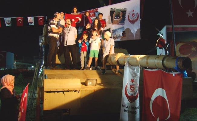 Sakarya Valiliğin yanına getiriler bir tankın üzerine çıkan vatandaşlar bol bol resim çekildiler.