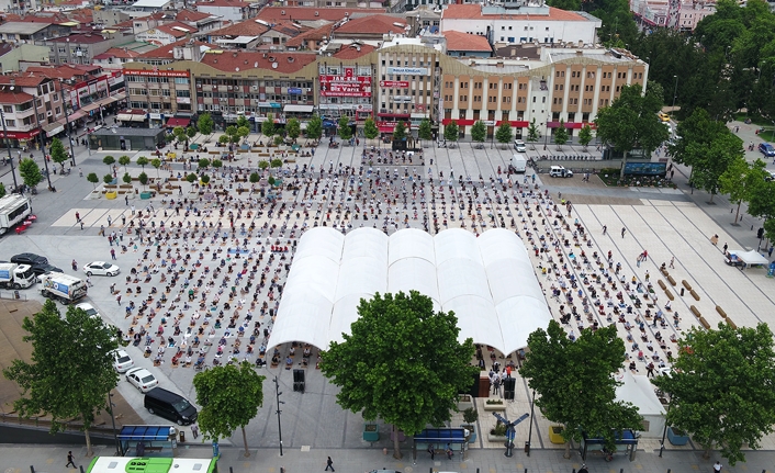 Sakarya’da koronavirüs tedbirleri kapsamında Demokrasi Meydanı’nda kılınan cuma namazları 5. haftada da devam etti. Büyükşehir Belediyesi tarafından hazırlanan Demokrasi Meydanı’nda vatandaşlar saf tutarken, Cuma namazını Orhan Camii İmam-Hatibi Alaaddin Beşel kıldırdı. Abdest ve seccadelerini alan, maskelerini takan Sakaryalı vatandaşlar sosyal mesafeye uyarak saf tuttu. AK Parti Genel Başkan Yardımcısı Ali İhsan Yavuz, AK Parti İl Başkanı Yunus Tever, Büyükşehir Belediye Başkanı Ekrem Yüce, ilçe belediye başkanları, İl Müftüsü Hasan Başiş de meydanda yüzlerce vatandaşla birlikte saf tuttu.